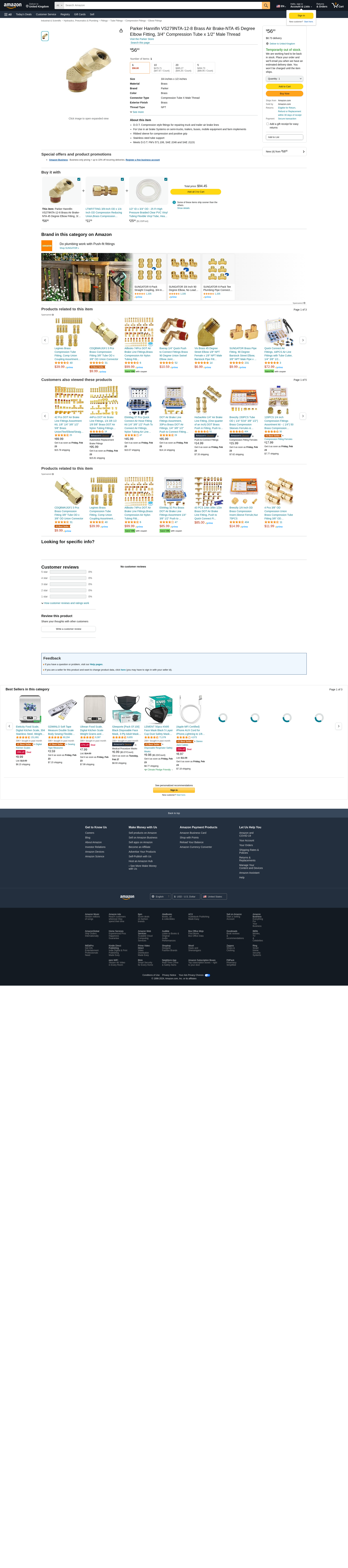 Parker Hannifin VS279NTA-12-8 Brass Air Brake-NTA 45 Degree Elbow Fitting, 3/4" Compression Tube x 1/2" Male Thread