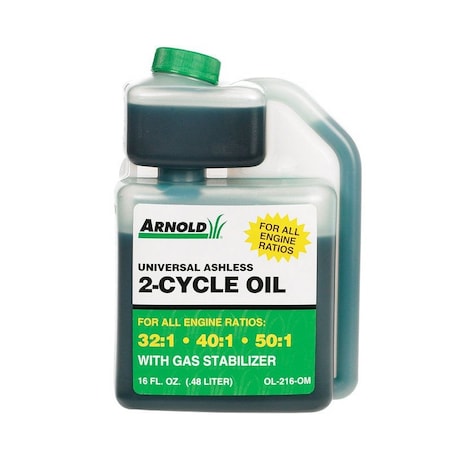 All Ratio 2-Cycle OilArnold label. Premium-grade engine oil is specially formulated for use in all air-cooled, 2-cycle engines.No. OL-216-OM: 16 oz. bottle with measuring chamberNo. OL-232-OM: 3.2 oz. bottle