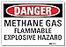 - CHEMICAL HAZARDS. Use this Methane Gas Flammable Explosive Hazard label to warn your workers not to smoke or allow open flames in the area.