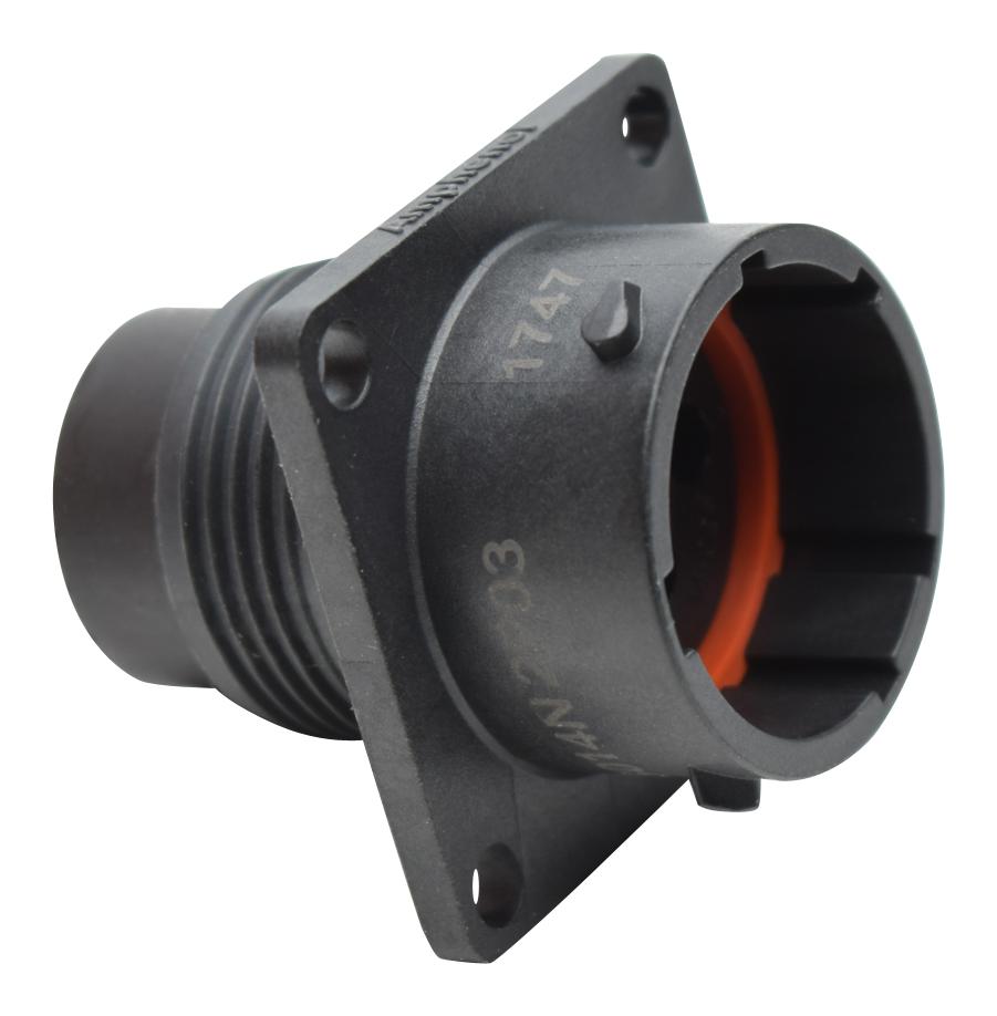 Sealing: IP67 / IP69k (in mated condition)<br>Connector Type: Circular<br>Connector Style: Receptacle<br>Mounting Type: Square Flange<br>Number of Contacts: 4 (2+2)<br>Contact Style: Pin<br>Termination Method: Crimp<br>Contact Size: 16, 2.5mm<br>Grommet Seal Material: Silicone<br>Amperage Rating: 23A & 13A<br>Operating Voltage DC: 500<br>Operating Temperature: -40F to 257F (-40C to 125C)