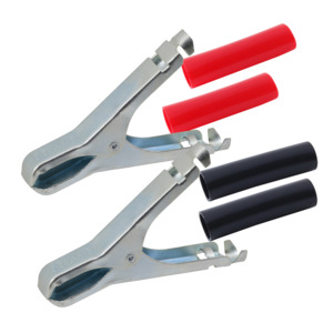 NTE Electronics 72-140-KIT Mini Plier Type Zinc Plated Steel Clip Kit with 1 Pair of 72-140 and 2 Each of 72-142-0 and 72-142-2 Insulator, 50 Amp, Black/Red