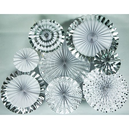 Quasimoon Metallic Silver Pinwheel Paper Flower Backdrop Party Wall Decoration Combo Kit by PaperLanternStore