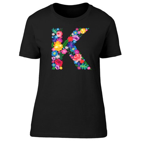 <ul> <li>Brand: Teeblox</li> <li>The letter ""K"" made of flowers on a black background. The letter of the English alphabet. Bright floral print. Great for T-shirts, cards and more.</li> <li>Black T-shirt 100% COTTON </li> <li>Perfect for this spring season </li> <li>abc,alphabet,baby,beautiful,bloom</li> </ul><p>Country of Origin: Made in Mexico