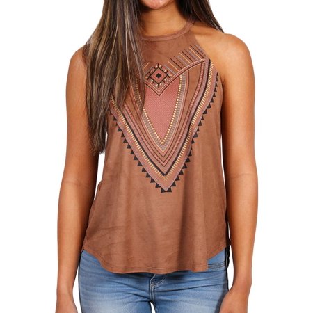 This stunning Shyanne Sleeveless Printed Tank has a stylish look that's perfect for casual and dressy occasions. It features a soft faux suede material with a printed design on the front and a high neckline. Wear it with your jeans and boots for effortless country style.