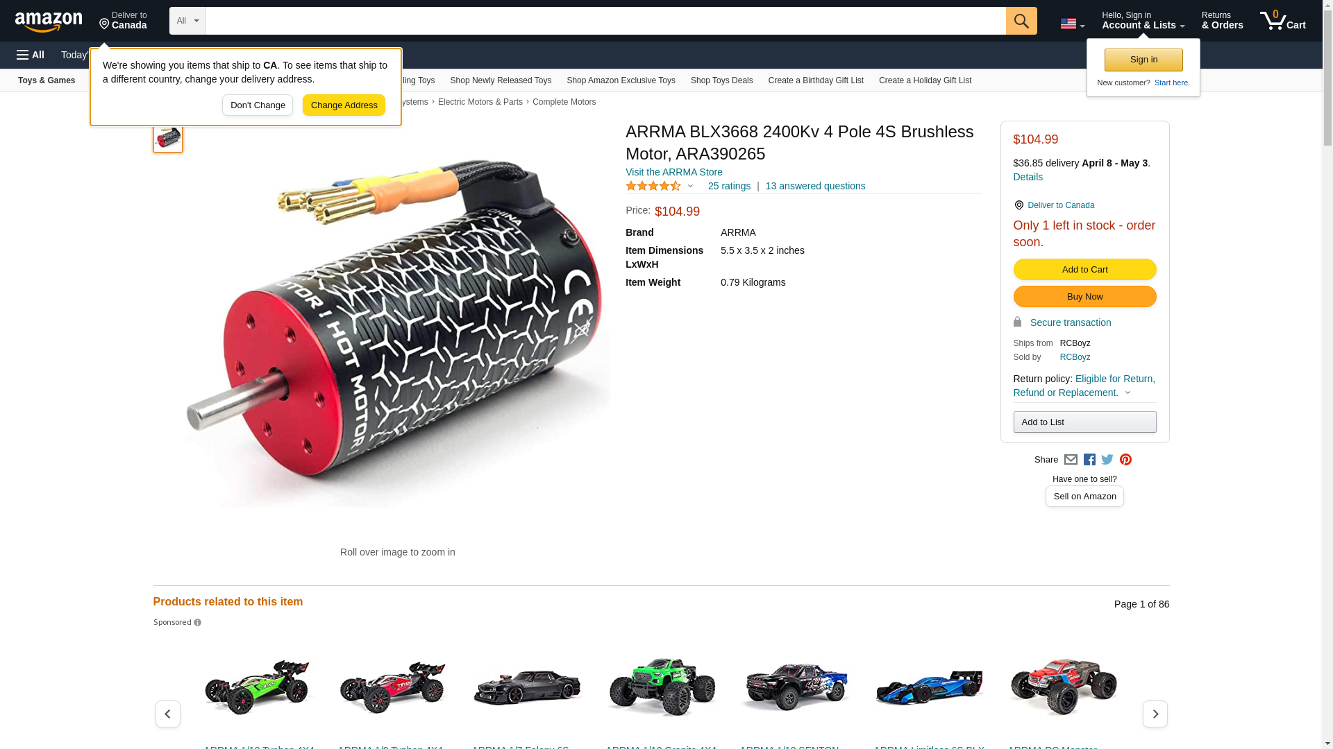 ![]() RC Planet | ARA390265 | 1 | -2 | 1 | 1 @ $89.99 |