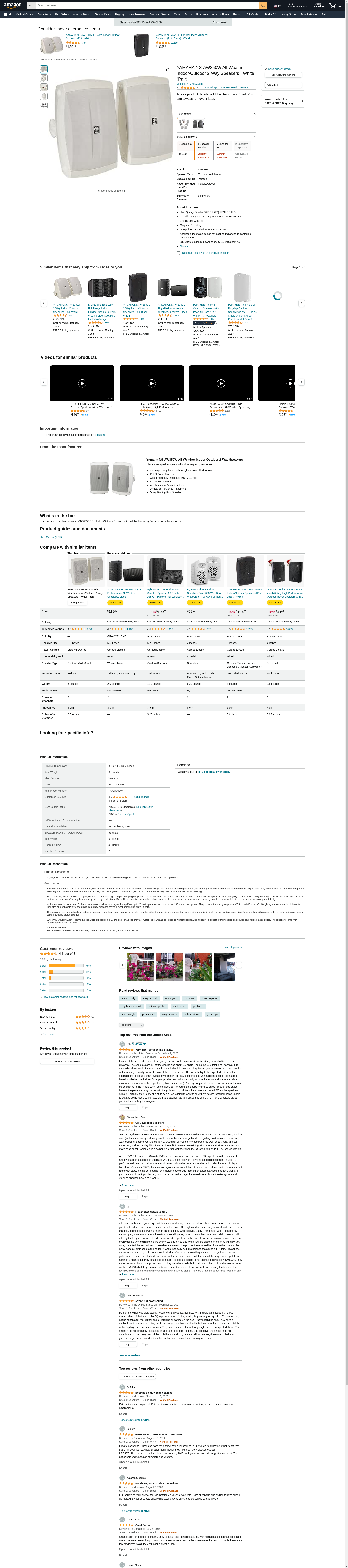 YAMAHA NS-AW350W All-Weather Indoor/Outdoor 2-Way Speakers - White (Pair)