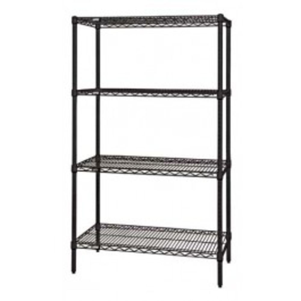 Quantum H/D 63"H 4-Shelf Wire Shelving Kit, 800lb, WR63, NSF, Black EPOXY