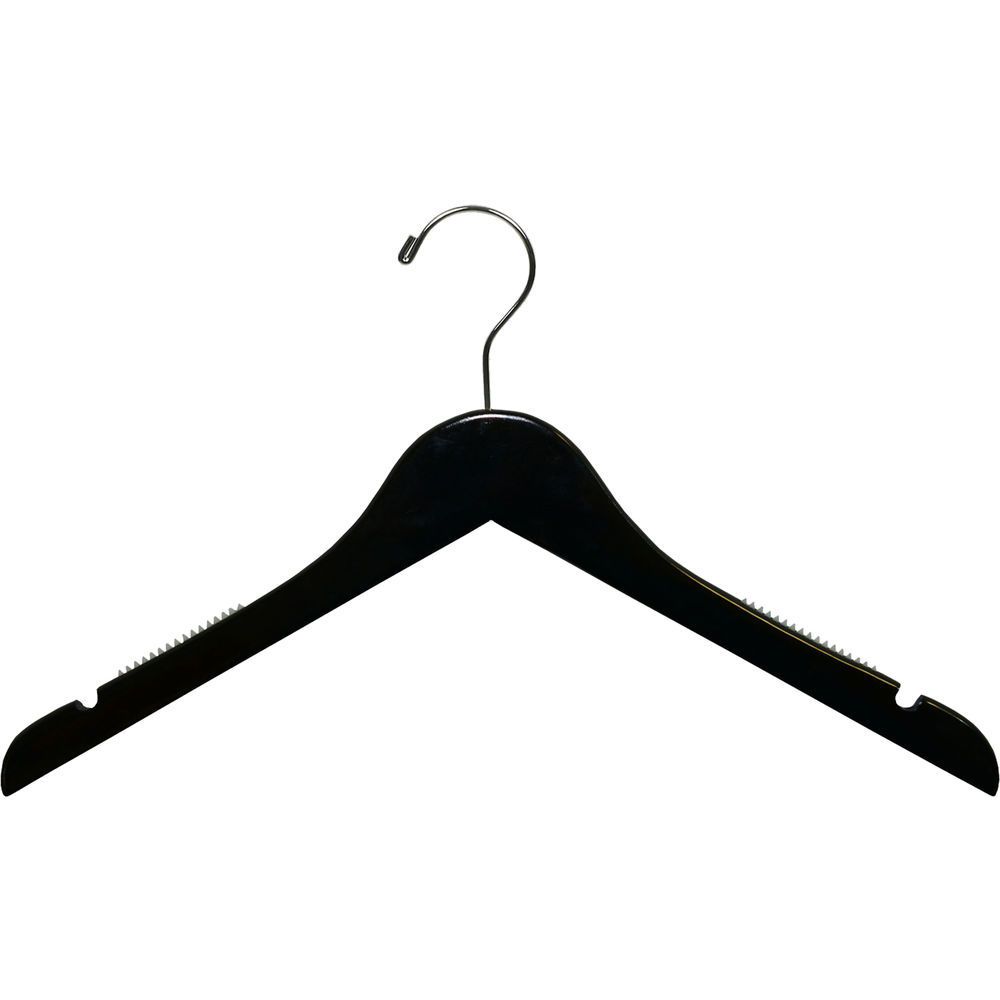 International Hanger Petite Black Wood Top Hanger W/ Notches & Rubber Strips (15