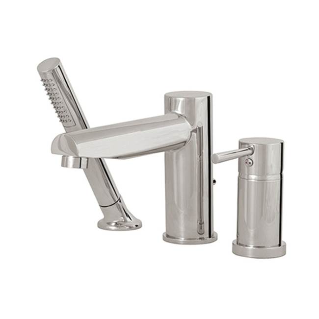 AQUABRASS ABFB61013255 VOLARE STRAIGHT 6 3/8 INCH THREE HOLES DECK MOUNT ROMAN TUB FAUCET WITH HANDSHOWER, GRAPHITE