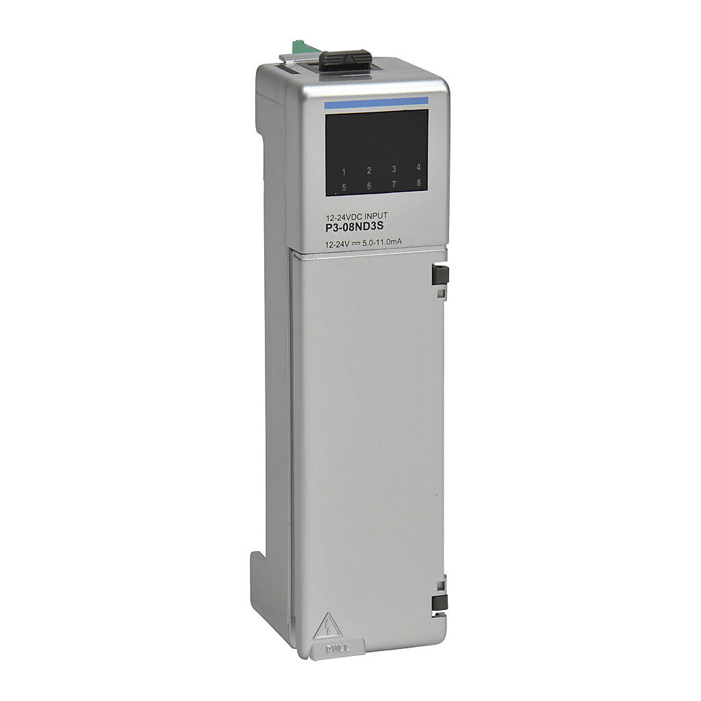 P3-08ND3S - Productivity3000 discrete input module, 8-point, 12-24 VDC, sinking/sourcing, 8 isolated common(s), 1 point(s) per common. Requires P3-RTB...