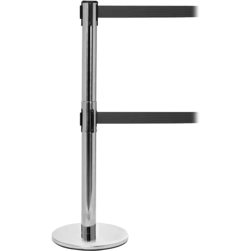 QueuePro Twin Retractable Dual Belt Barrier, 40" Stainless Steel Post, 11' Black Belt