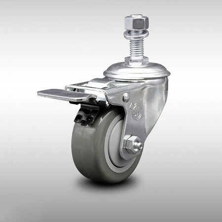 3.5 Inch SS Gray Polyurethane 12mm Threaded Stem Caster Total Lock Brake SCC