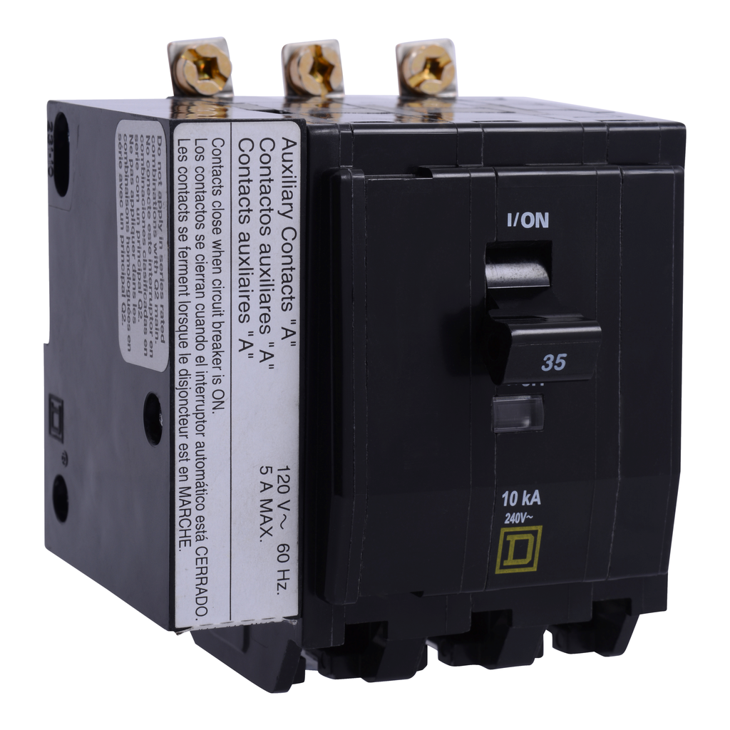 Mini circuit breaker, QO, 50A, 3 pole, 120/240VAC, 10kA, bolt on mount, aux switch 1A | Mayer Electric