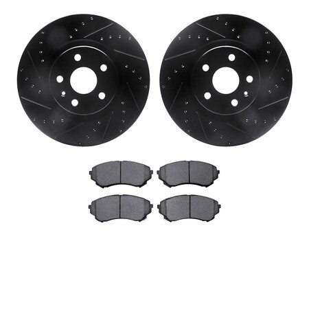 8602-46010, Rotors-Drilled and Slotted-Black with 5000 Euro Ceramic Brake Pads, Zinc Coated
