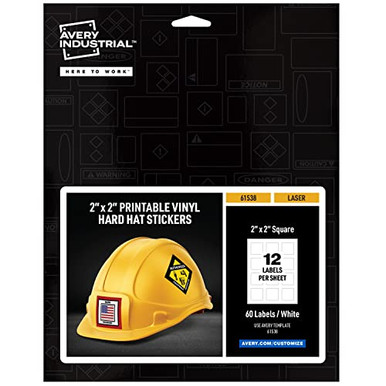 Buy Avery Dennison AVE61538 As low as $11.61 in bulk In stock Avery® Printable Hard Hat/Helmet Vinyl Stickers (ave-61538)