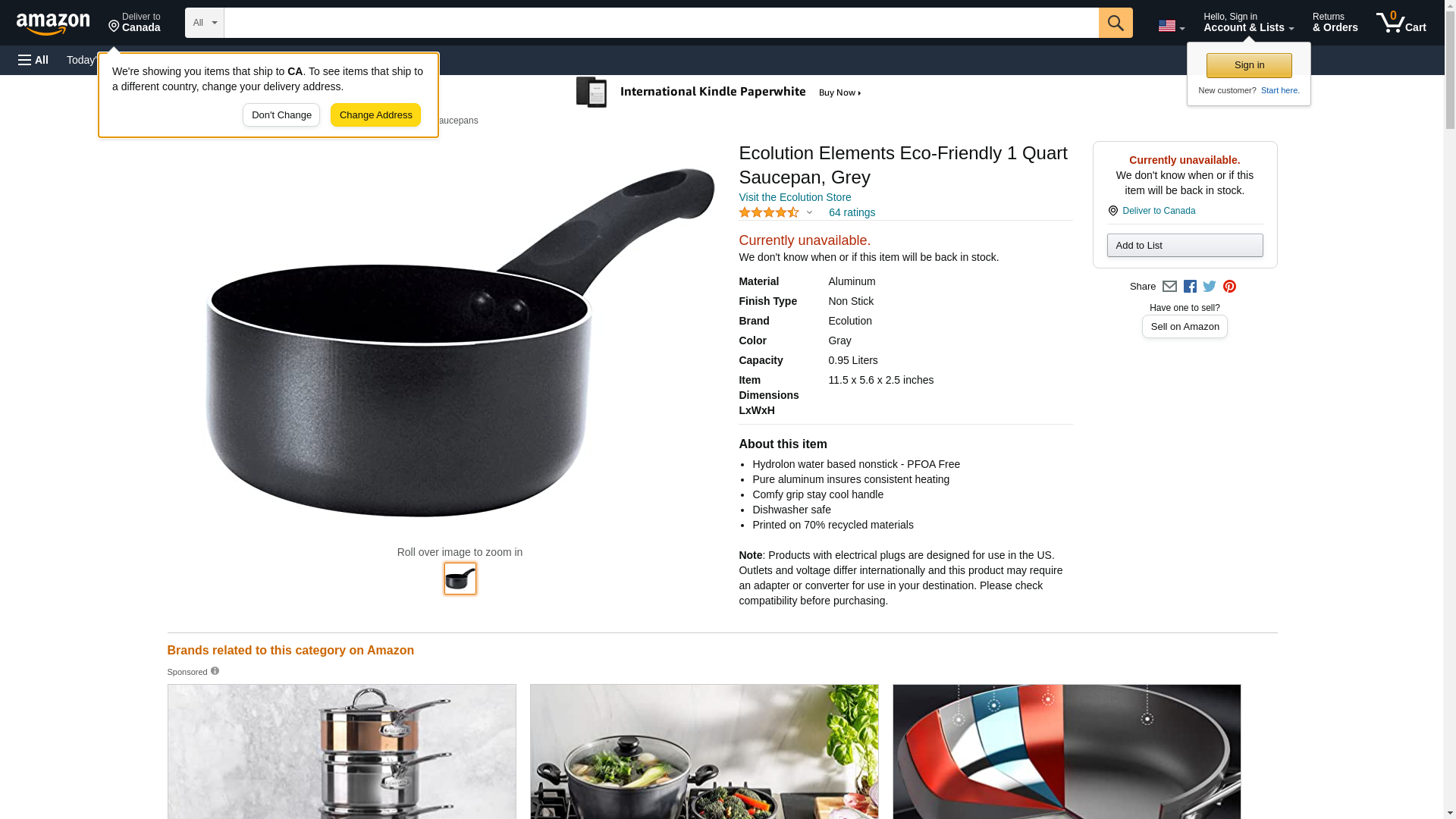 Ecolution Elements Eco-Friendly 1 Quart Saucepan, Grey