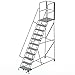 Tri-Arc RWSR111246-XR 11-Step Gateway Rear-Exit Steel Rolling Ladder with 30" Deep Top Platform, Perforated Tread with Handrails, 24" Wide Steps, Gray