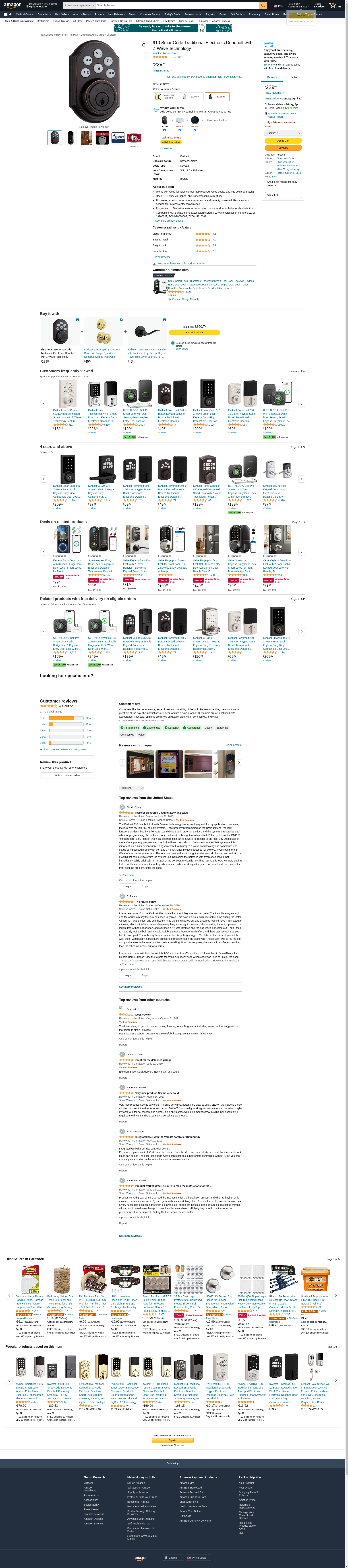910 SmartCode Traditional Electronic Deadbolt with Z-Wave Technology