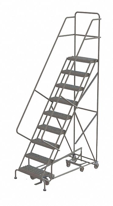 9 Step Steel Easy Turn Rolling Ladder, Serrated Tread, Safety Angle - KDAD109242