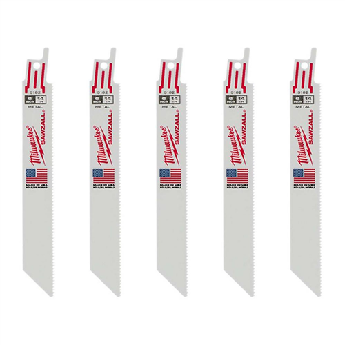 Milwaukee 48-00-5182 6" x 14T Thin Kerf Metal Cutting Sawzall Blades 5 Pack USA