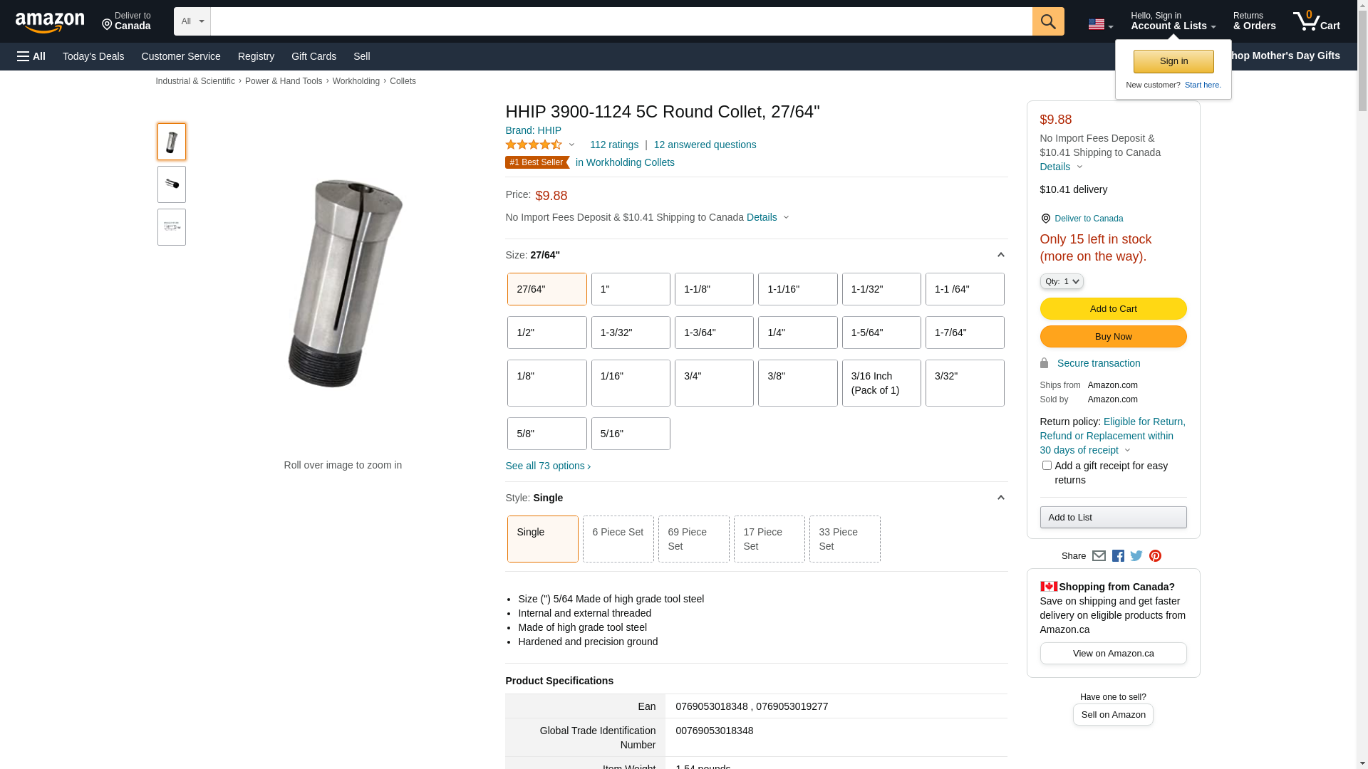 HHIP 3900-1124 5C Round Collet, 27/64"