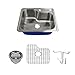 - Kit includes stainless steel sink, bottom grid, flip-top strainer, drain installation kit