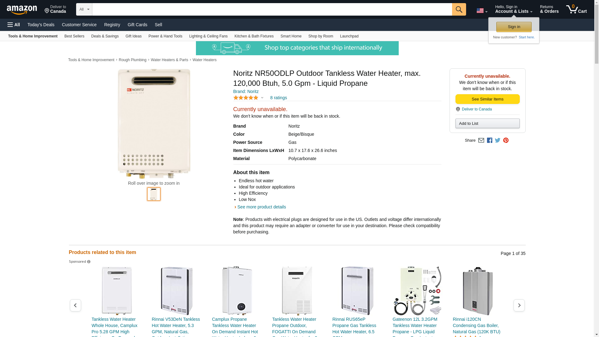 Noritz NR50ODLP Outdoor Tankless Water Heater, max. 120,000 Btuh, 5.0 Gpm - Liquid Propane