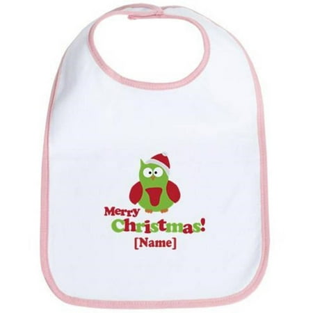 <br /> <b>Cafepress Personalized Merry Christmas Owl Bib:</b> <ul> <li>100 percent jersey cotton</li> <li>Measures 9" x 15" top to bottom and 9" x 10" bottom to collar</li> <li>One-size bib fits newborns to 36 months</li> </ul>