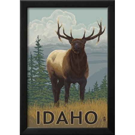 <ul> <li>Title: Idaho - Elk Scene</li> <li>Artist: Lantern Press</li> <li>Product Type: Framed Art Print</li> <li>Framed in SOHO Black</li> <li>Arrives ready-to-hang for fast, simple installation</li> <li>Framed Size: 15.5x22 in.</li> <li>Handcrafted in the USA</li> </ul>