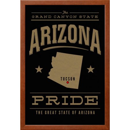 <ul> <li>Title: Tucson, Arizona - Pride - Gold on Black</li> <li>Artist: Lantern Press</li> <li>Product Type: Framed Art Print</li> <li>Framed in SOHO Pecan</li> <li>Arrives ready-to-hang for fast, simple installation</li> <li>Framed Size: 22x32.5 in.</li> <li>Handcrafted in the USA</li> </ul>