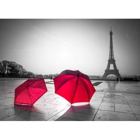Two Umbrellas in front of the Eiffel tower Paris France Rolled Canvas Art - Assaf Frank (9 x 12)