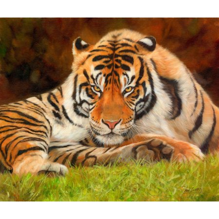 Tiger Resting on the Grass Rolled Canvas Art - David Stribbling (28 x 22)