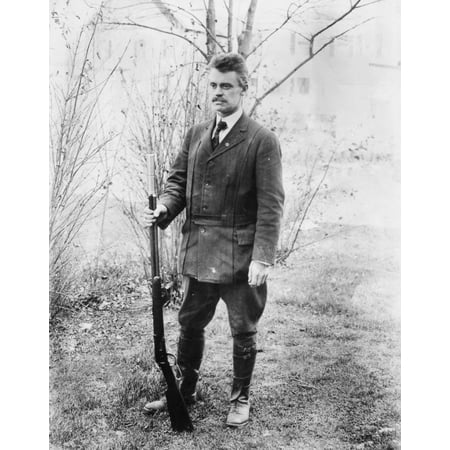 Hiram Percy Maxim N(1869-1936) American Inventor The Inventor With His Maxim Silencer For Firearms C1908 Poster Print by Granger Collection
