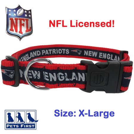 <br /> <b>NFL New England Patriots Strong, Durable, Heavy-Duty Dog Collar, Officially Licensed:</b> <ul> <li>Officially licensed by the NFL; don't be fooled by other unlicensed, lower quality products</li> <li>Hot, cool dog collar features bright NFL team name, logo and colors of your favorite football team</li> <li>Made with strong and durable material yet fashionable too</li> <li>Metal D ring to attach your leash</li> <li>Designed with breakaway buckle for easy open/close</li> </ul>