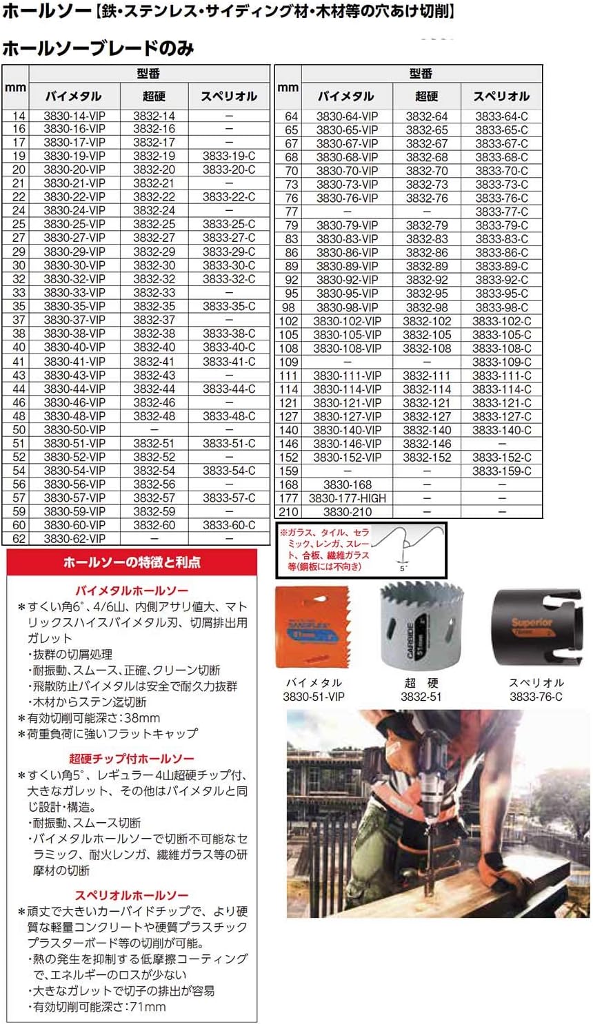The BAHCO 3830-44-VIP 1 3/4-Inch bi-metal holesaw is equivalent to 44 millimeters in metric measurement. It Combines a flexible shatter resistant spring steel back with a high speed steel cutting edge to provide faster, more durable cutting power. The cutting edge features 4 to 6 teeth per-Inch and is an electron beam-welded to a tough alloy back and then the teeth are precision ground to further increase cutting efficiency. This holesaw cuts clean, accurate holes in virtually any machinable material. The vertical slots allow for easy core removal.
