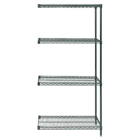 Quantum AD63-3636P Wire Shelving Add-On Kit, 36"W x 36"D x 63"H, 600 lbs Capacity, Carbon Steel, Epoxy Coated, Green, NSF
