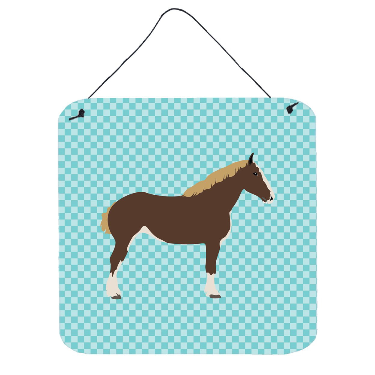 Percheron Horse Blue Check Wall or Door Hanging Prints, 6 x 6 in.