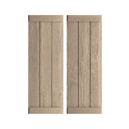 Ekena Millwork SHUBJE16X90RSPR 16 1/2"W x 90"H Rustic Three Board Joined Board-n-Batten Rough Sawn Faux Wood Shutters w/End Batten (Per Pair), Primed Tan