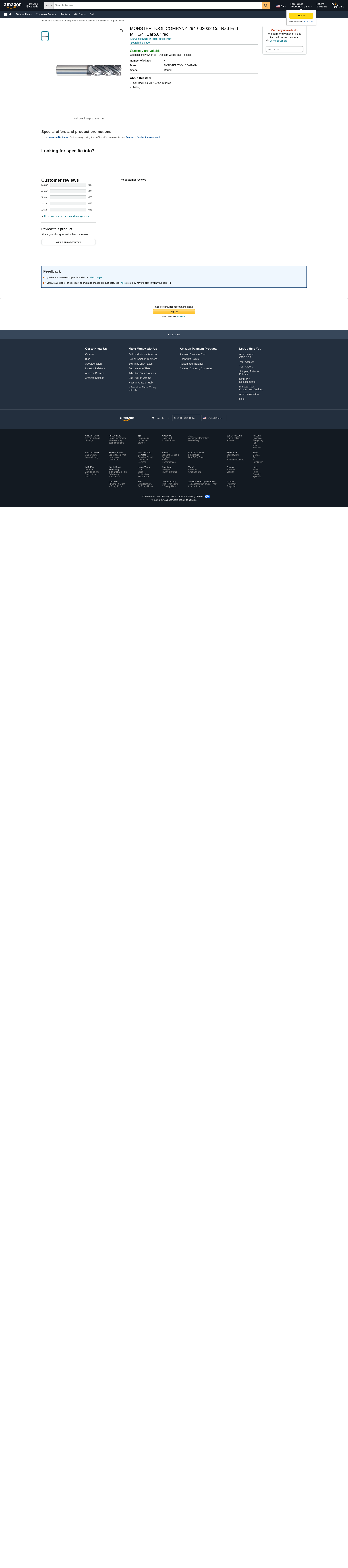 MONSTER TOOL COMPANY 294-002032 Cor Rad End Mill,1/4",Carb,0" rad