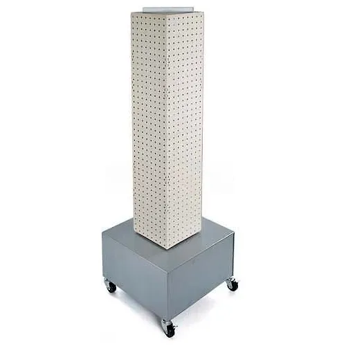 Global Approved 703386-WHT 4-Sided Interlocking Pegboard Display W/ Wheels, 8" x 40", White Solid