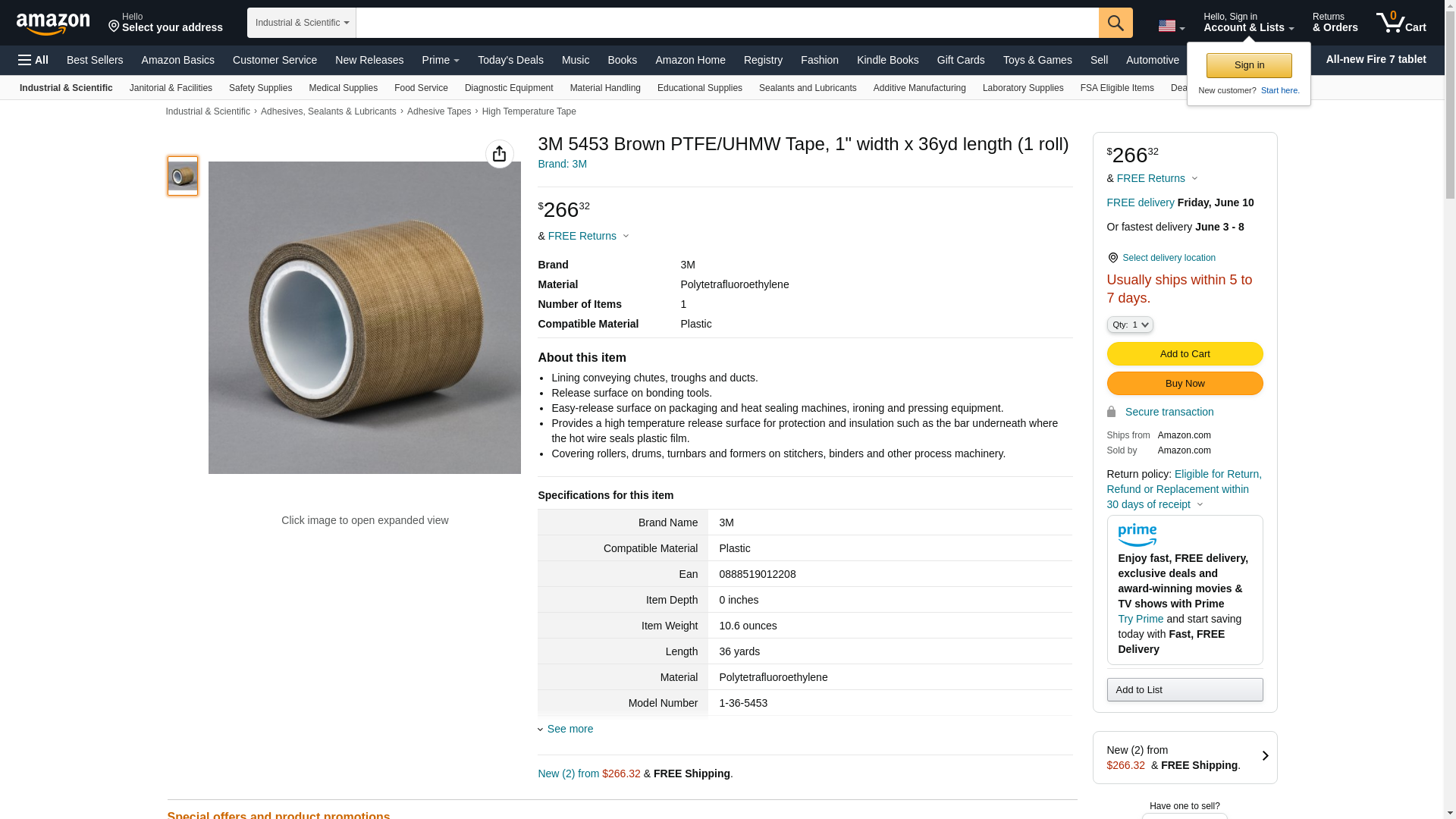 3M 5453 Brown PTFE/UHMW Tape, 1" width x 36yd length (1 roll)