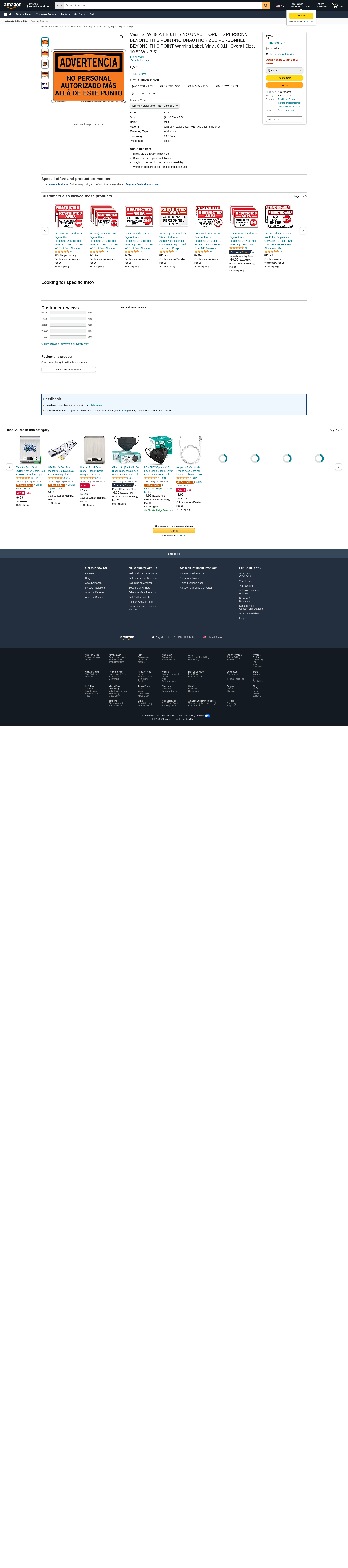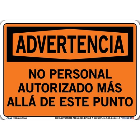 Vestil SI-W-48-A-LB-011-S NO UNAUTHORIZED PERSONNEL BEYOND THIS POINT/NO UNAUTHORIZED PERSONNEL BEYOND THIS POINT Warning Label, Vinyl, 0.011" Overall Size, 10.5" W x 7.5" H