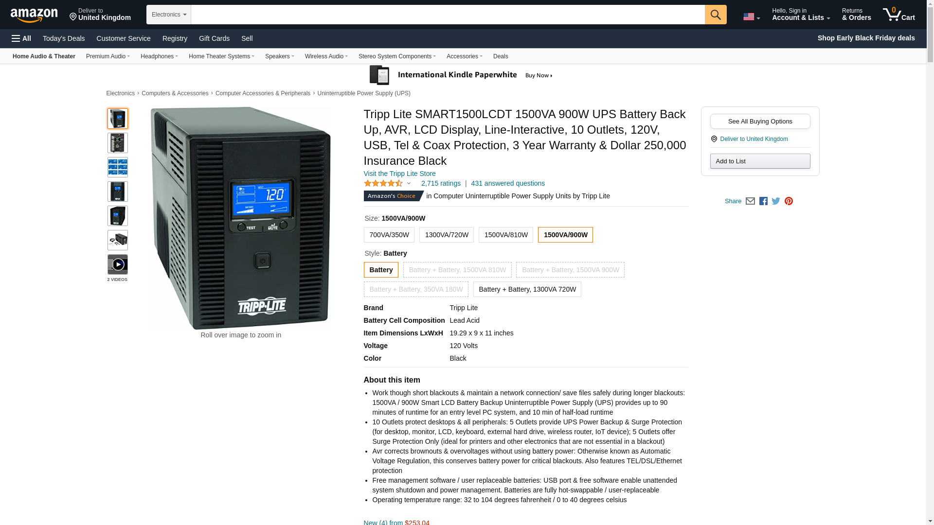 Buy Tripp Lite SMART1500LCDT 1500VA 900W UPS Battery Back Up, AVR, LCD Display, Line-Interactive, 10 Outlets, 120V, USB, Tel & Coax Protection, 3 Year Warranty & Dollar 250,000 Insurance Black: Uninterruptible Power Supply (UPS) - Amazon.com ? FREE DELIVERY possible on eligible purchases