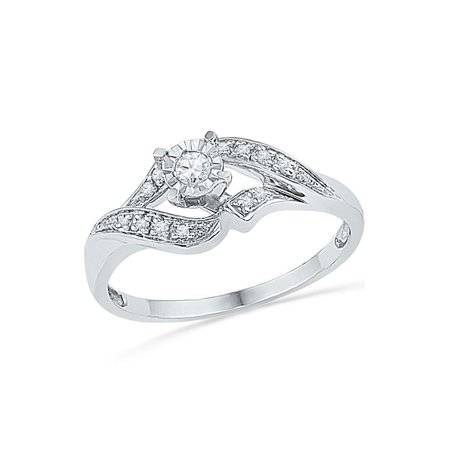 <ul> <li>10kt White Gold</li> <li>1/6 Carats total weight --- 1/10 carat center solitaire</li> <li>1.88 grams (approximately)</li> <li>Ring size selectable. All diamonds are natural and conflict-free in origin.</li> </ul>