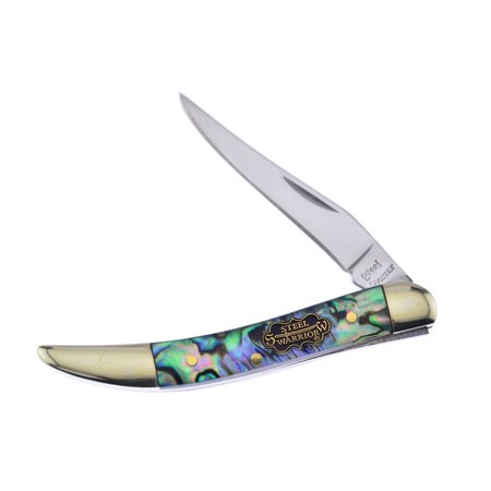 STEEL WARRIOR Smooth Resin-coated Genuine Abalone Small Toothpick Stainless Pocket Knife Knives