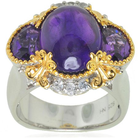 <ul> <li>Two-tone ring showcases a luscious mix of smooth and faceted amethyst and white sapphire gems</li> <li>Michael Valitutti jewelry is crafted of polished .925 sterling silver and palladium with 18-karat yellow gold vermeil and rhodium accenting</li> <li>Ensure a look of cool sophistication with a new designer ring on your finger</li> </ul>