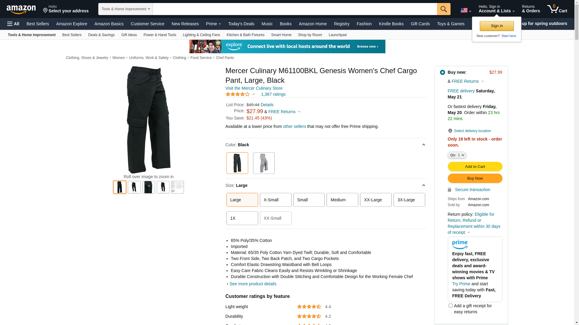 Mercer Culinary M61100BKL Genesis Women's Chef Cargo Pant, Large, Black