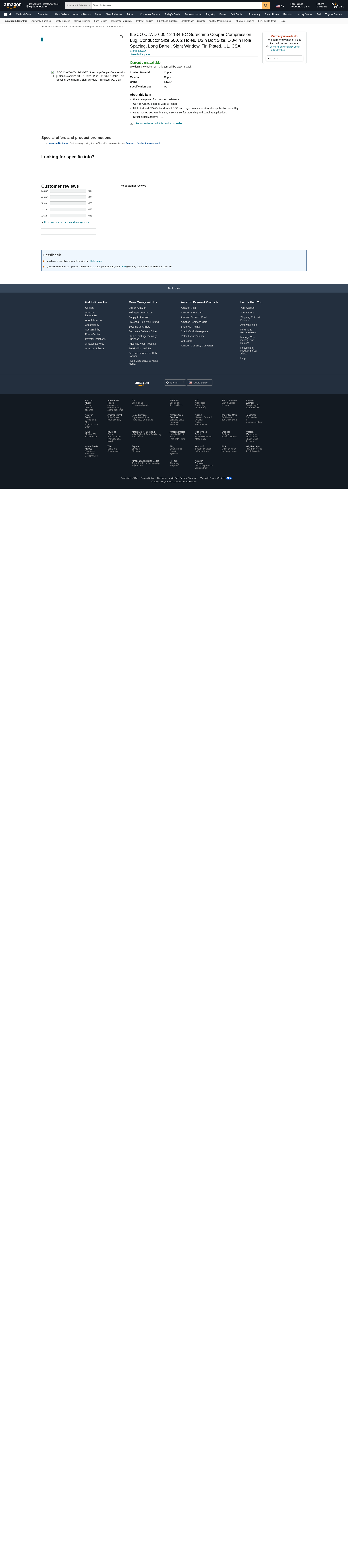 ILSCO CLWD-600-12-134-EC Surecrimp Copper Compression Lug, Conductor Size 600, 2 Holes, 1/2in Bolt Size, 1-3/4in Hole Spacing, Long Barrel, Sight Window, Tin Plated, UL, CSA