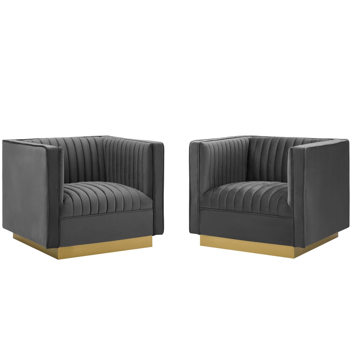 Modway Sanguine Vertical Channel Tufted Upholstered Performance Velvet Armchair Set of 2, Gray