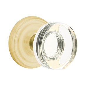 Crystal Door Hardware Collection - Modern Disc Glass Passage Door Knob with Regular Rose in Satin Brass by Emtek Hardware - 8100MDCUS4234 | MyKnobs